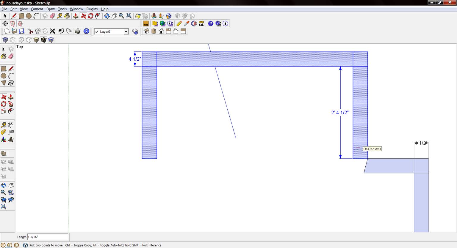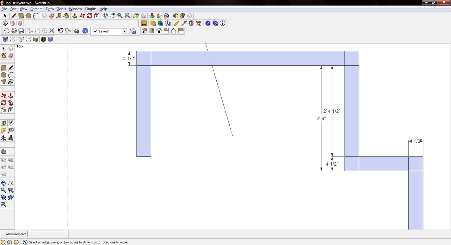 Below is an example of the hallway, which should have been 2 ft 11 inches but was short on the line I was drawing and long on the wall I was connecting it too, this required several areas to be shifted.