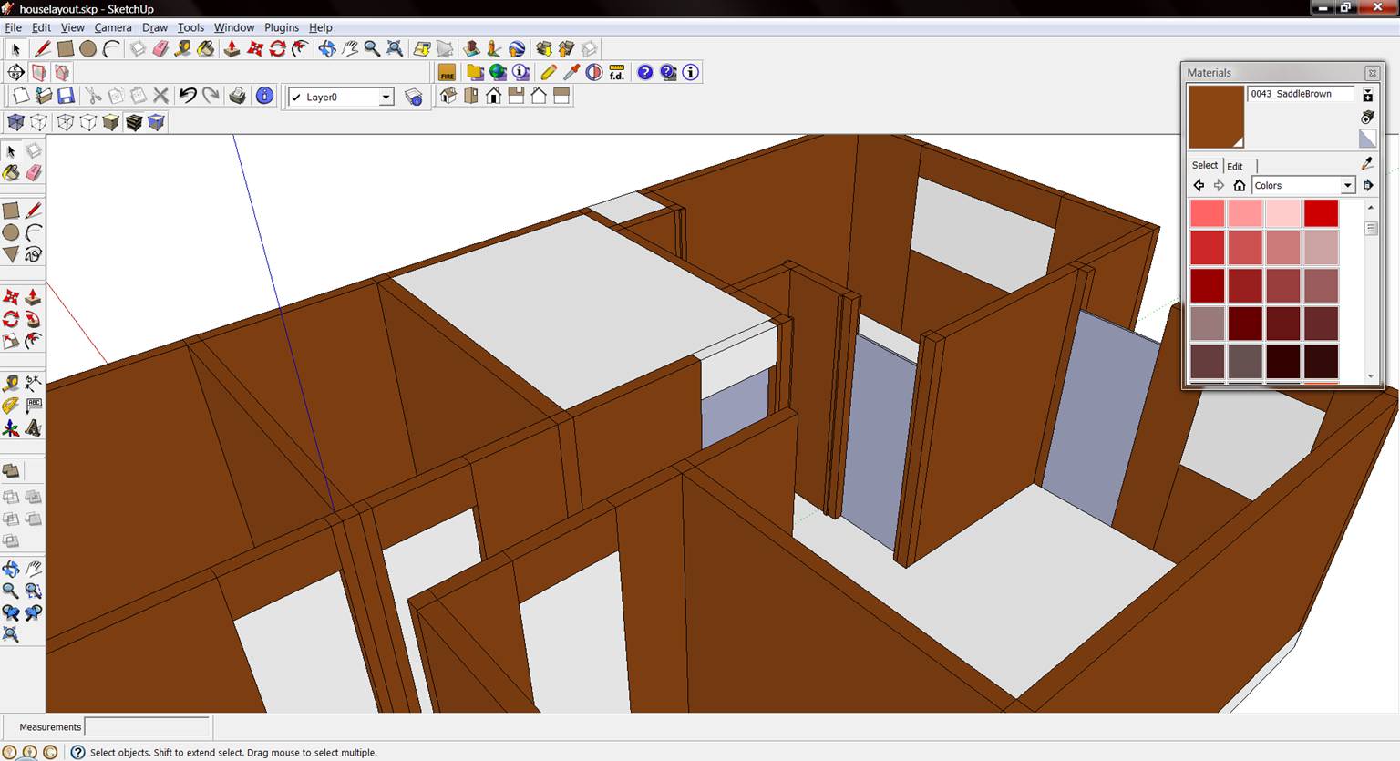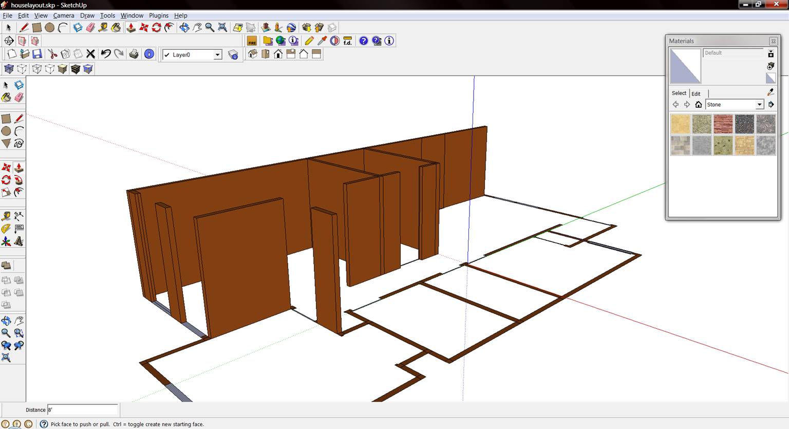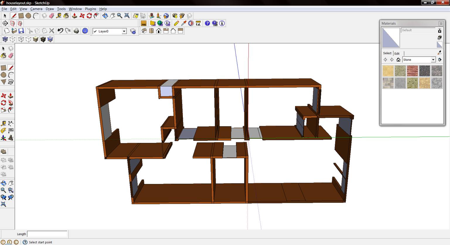 I did not finish it completely, as I had approached the project in a more technical manner than I should have: I measured and modeled every single dimension of my house into SketchUp, so that I could use the model later in personal endeavors.