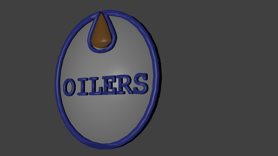 The most difficult part of this project was getting the letters "OILERS" into a 3D object. The extrude function does not work with text objects. This forced me to find another method I was going to translate the bottom vertices of the letters like the original Oilers logo has. But this was an incredibly daunting task and did not make it into the final project.