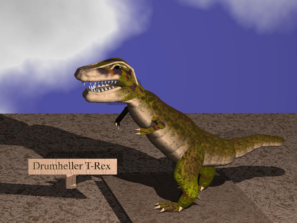DESCRIPTION: I chose the giant Tyranosaurous (sp?) Rex that is on display in Drumheller. You can actually pay money to climb up the dinosaur and have your picture taken inside the things mouth. I choose this model because I knew it would be both challenging and fun.